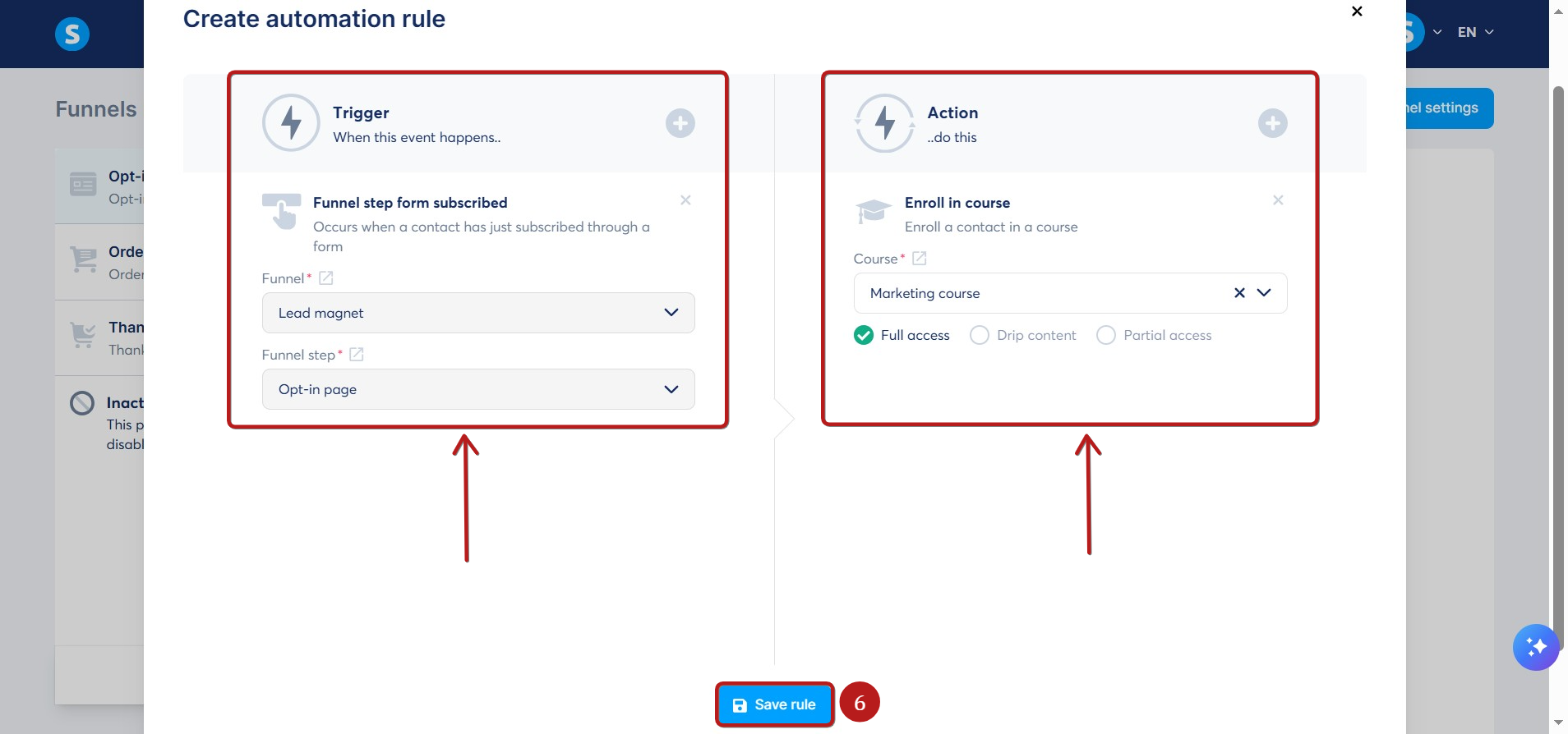 Në këtë artikull, do të mësoni se si të jepni akses kursi automatikisht për kontaktet që regjistrohen përmes formularit tuaj opt-in.